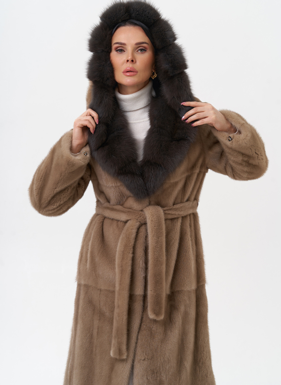 Женские норковые шубы с отделкой куницей