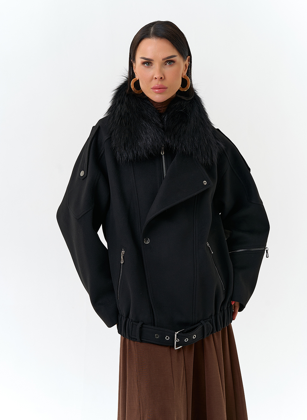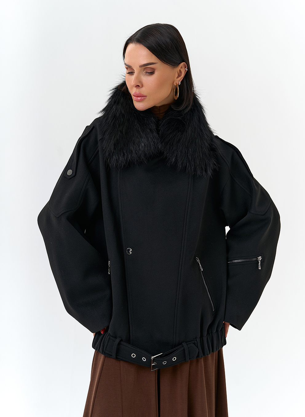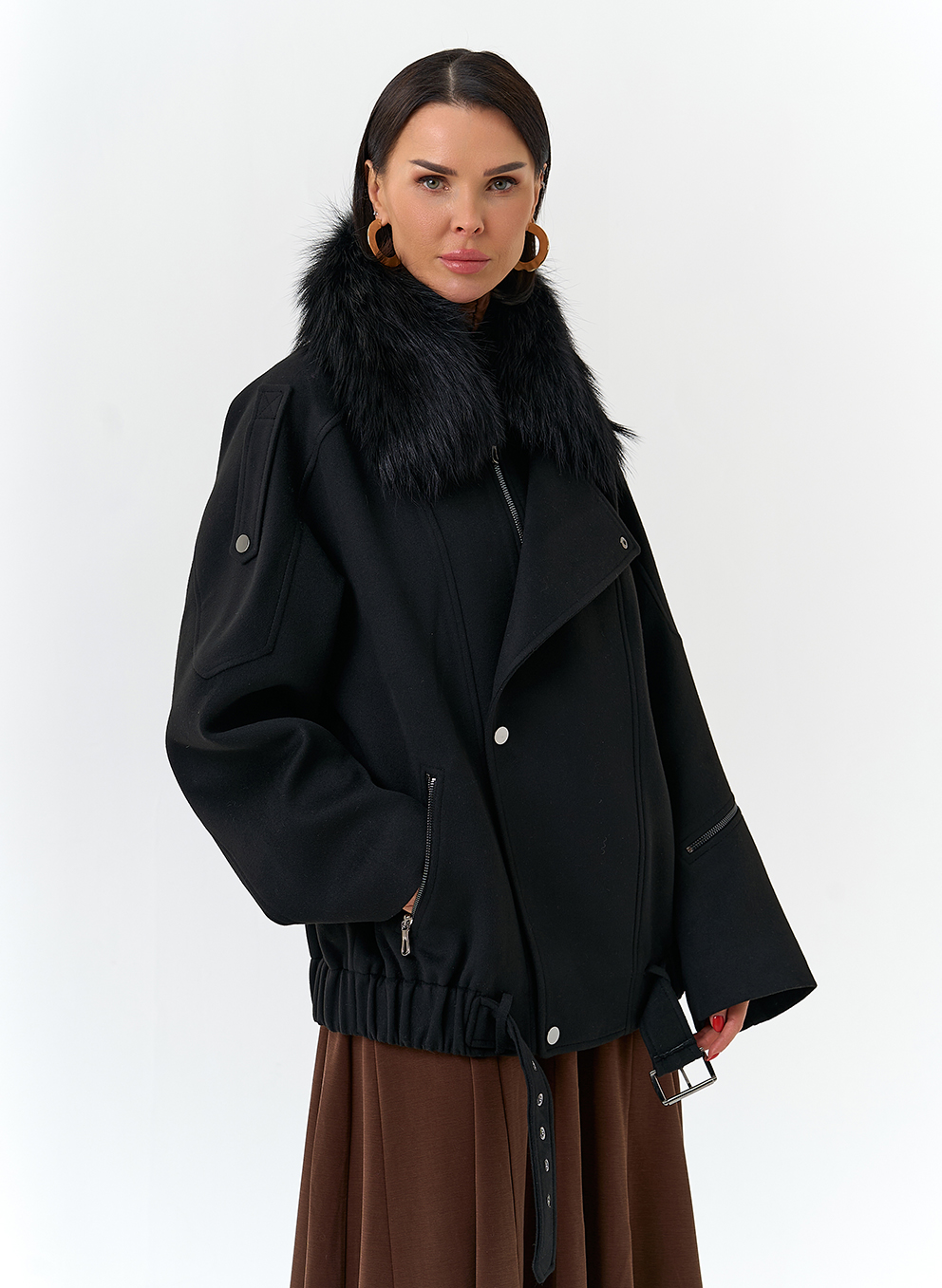 Отделка воротника - съемный мех лисы, цвет черный
