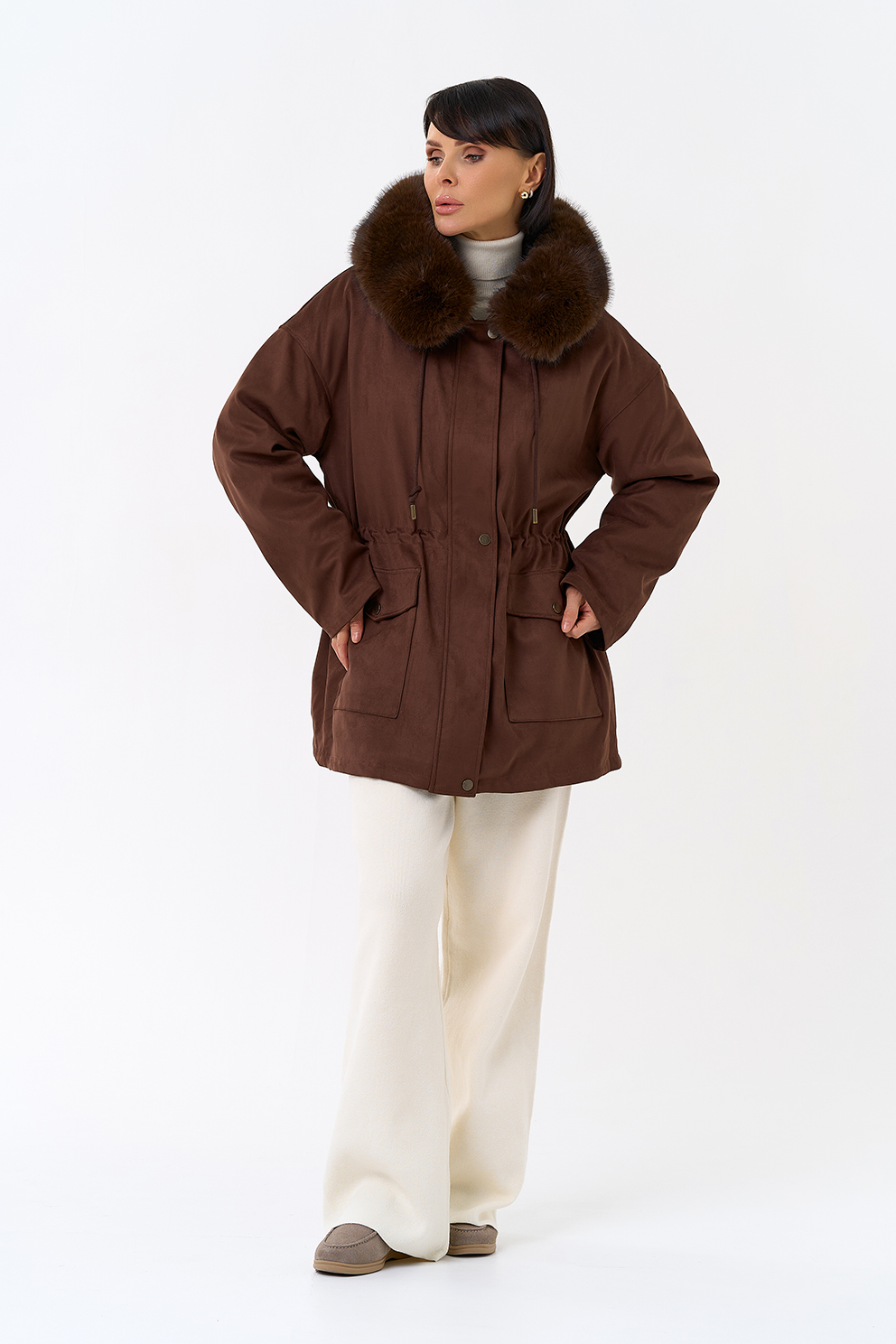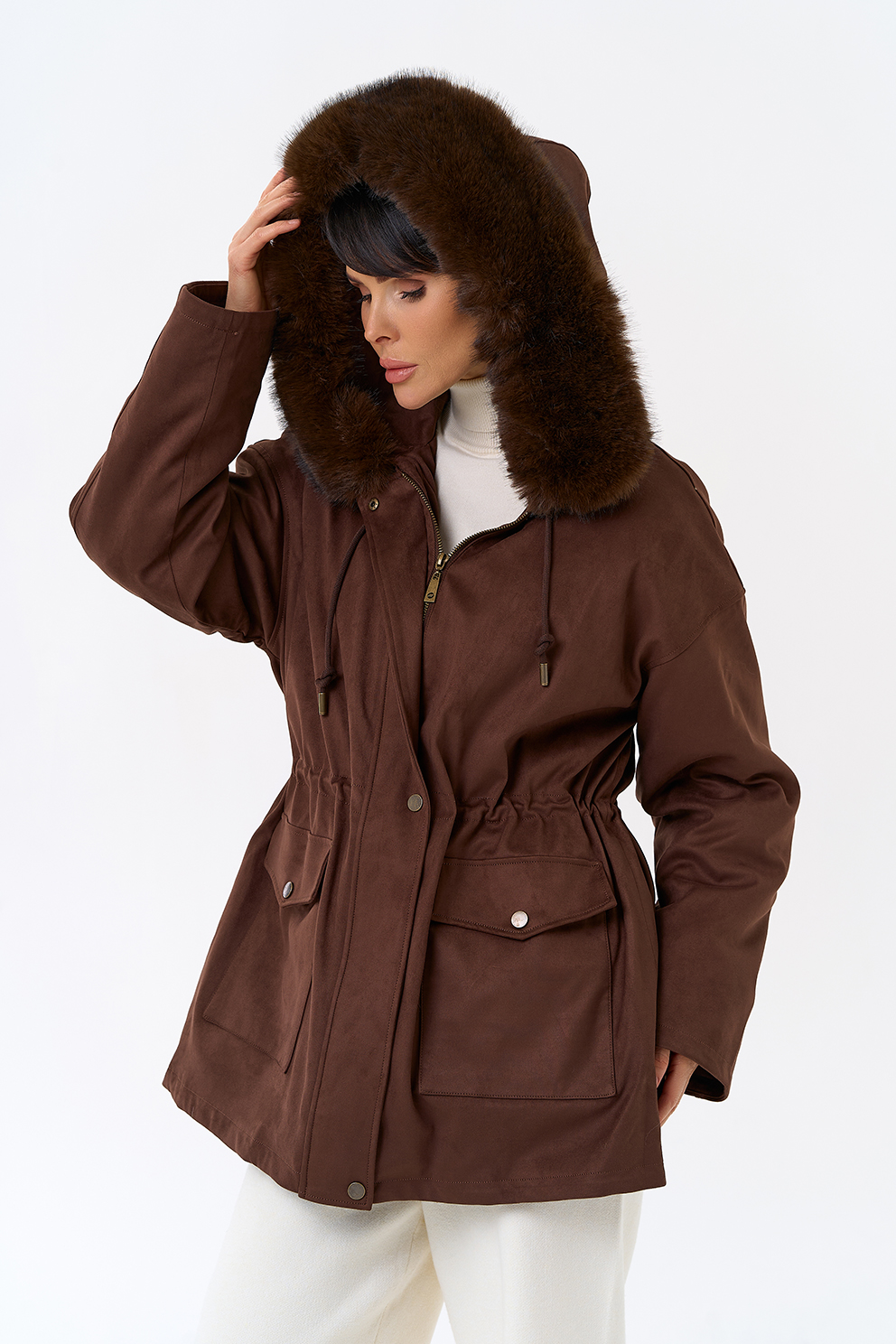 Отделка воротника - эко мех, цвет коричневый